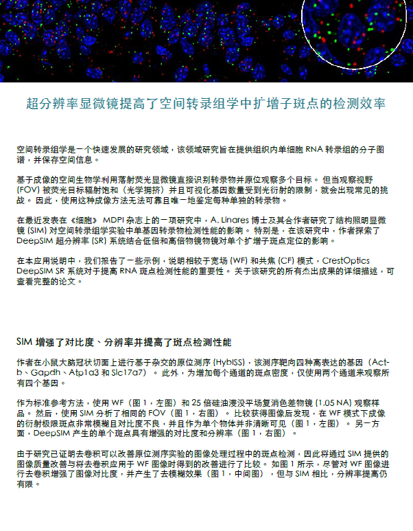 本应用说明中介绍的所有成果均为使用 CrestOptics X-Light V3 转盘和 DeepSIM X-Light SR 系统演示得来。