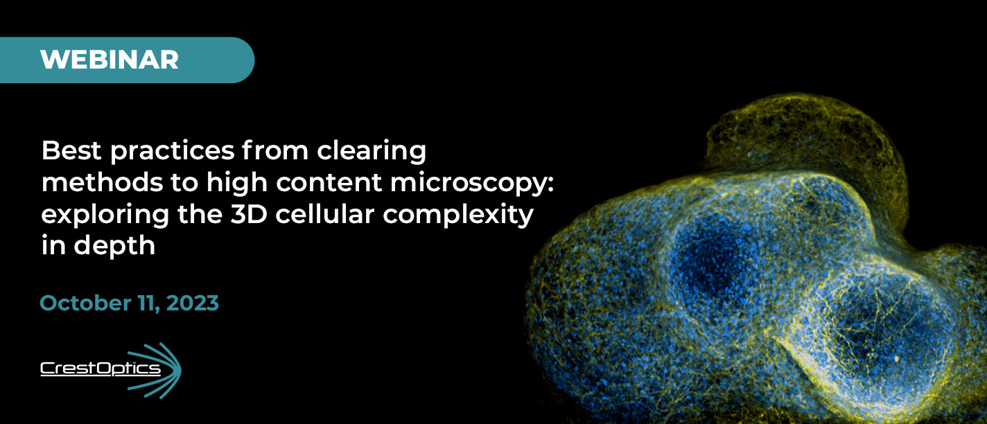 In addition to that, you will learn how CrestOptics X-Light V3 Spinning Disk Confocal technology allows the collection and analysis of 3D images of whole cleared samples at a higher resolution than a wide-field microscope and at a faster scan rate than a point-scanning confocal microscope.