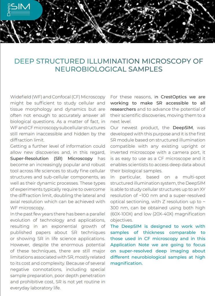 The DeepSIM is designed to work with samples of thickness comparable to those used in CF microscopy and in this Application Note we are going to focus on super-resolved deep imaging about different neurobiological samples at high magnification.