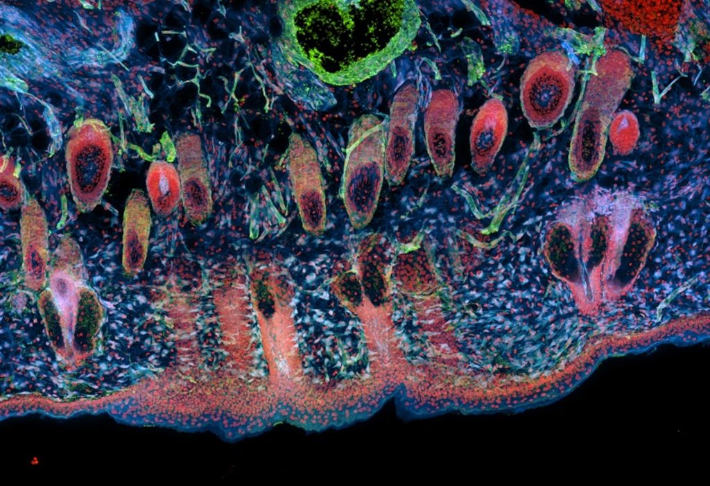 Figure 1: Mouse melanoma allograft model. A Maximum Intensity Projection of a 30 µm thick section acquired with CICERO Spinning Disk is shown. The high-quality sections allow the visualization of the innervation in both tumor and skin tissues.Sample provided by Cecilia Pazzi from the laboratory of Chris Marine (CCB – VIB), imaging by Nikky Corthout (BIC Leuven).
